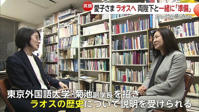 これに先立ち、天皇ご一家は、東京外国語大学の菊池副学長を招き、ラオスの歴史について、ご家族揃って説明を受けられていた。