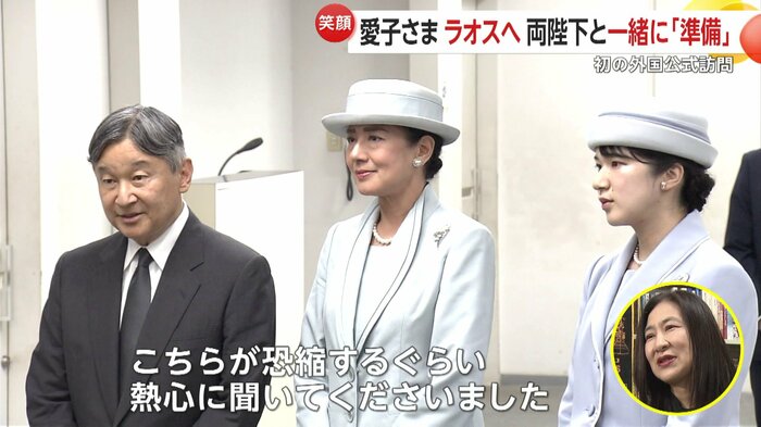 (愛子さまは)非常に歴史には関心を持たれているとお見受けいたしました。本当に両陛下も愛子さまも、筆記をしながら、こちらが恐縮するぐらい熱心に聞いてくださいまして。