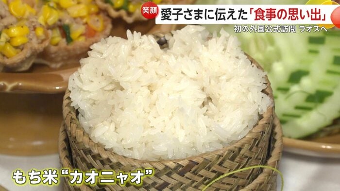 陛下はラオスの主食である、竹編みのかごで提供されるもち米「カオニャオ」に親近感を覚え、「その国の文化の一端に触れることができることも外国訪問の楽しみ」と述べられていた。