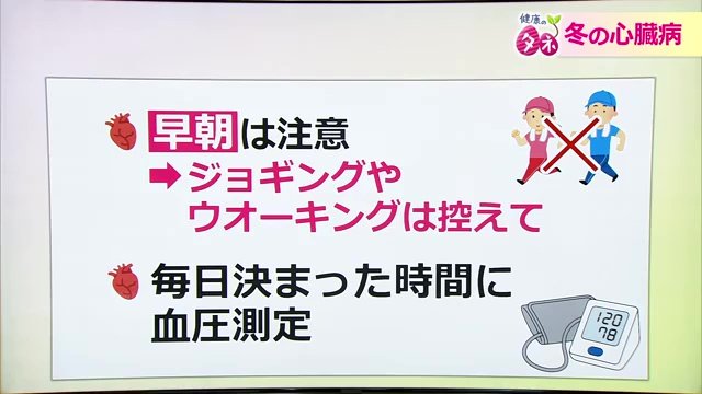 国の統計によると、心臓病による死亡数は1月が最も多く、次いで2月、12月と冬の時期に集中している。その数は、夏場の約1.5倍にも上るという。
