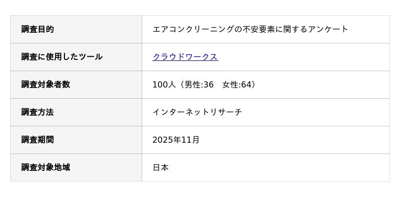 エアコンクリーニングの不安要素に関するアンケート調査の概要
