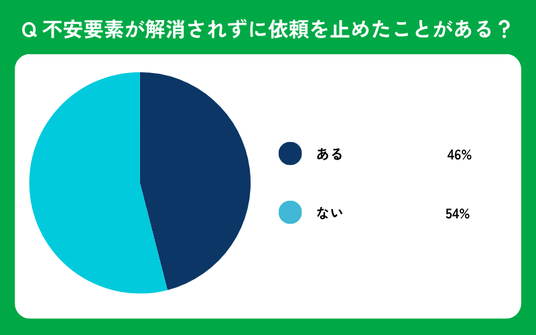 ・半数近くがエアコンクリーニングに関する不安要素が解消されずに依頼を止めた経験がある。