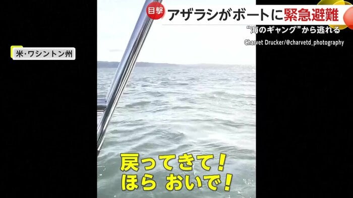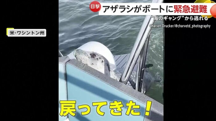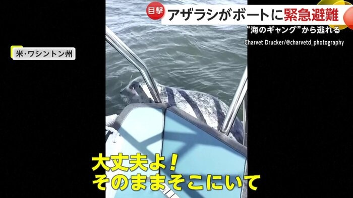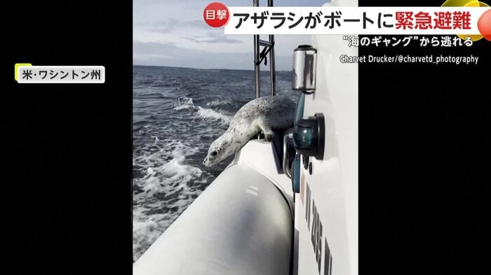 アメリカの海上で、アザラシがボートに逃げ込んでくる様子がカメラに捉えられた。アザラシはシャチに追われてきたとみられ、船に“緊急避難”。シャチの群れがボートを揺らすなどしてアザラシが海に落ちる場面もあったが、シャチたちが諦めて姿を消すと、アザラシは海に戻っていった。