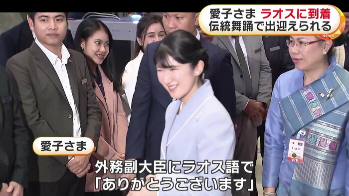 側近によりますと、愛子さまは「温かく歓迎していただき大変うれしく思っております」と喜び、案内役の外務副大臣にラオス語で「ありがとうございます」とお礼を伝えられたということです。
