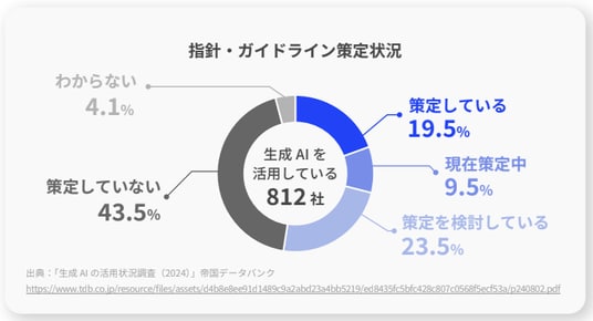 帝国データバンク調査によると、生成AIを活用している企業はわずか17.3% 活用企業の9割が効果を実感する一方、導入予定なしが約半数。