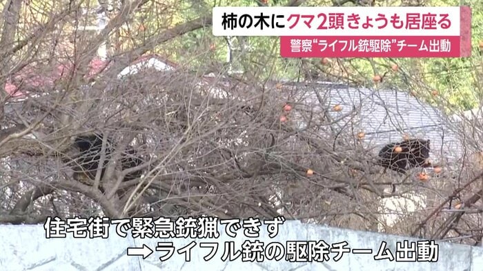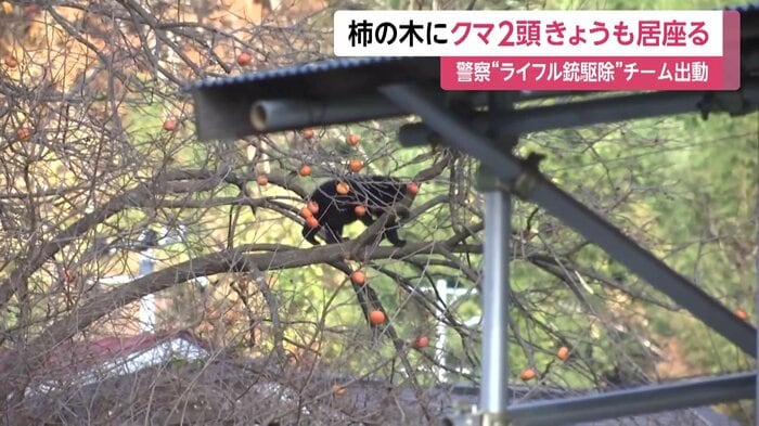 この柿の木には、17日にも2頭のクマが13時間にわたり居座ったほか、12日にも出没している。