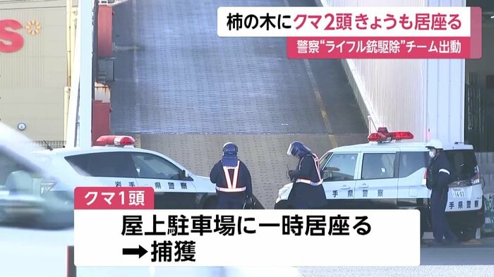 一方、盛岡市では18日朝、クマ1頭がホームセンターの屋上駐車場に一時居座ったが、先ほど捕獲された。