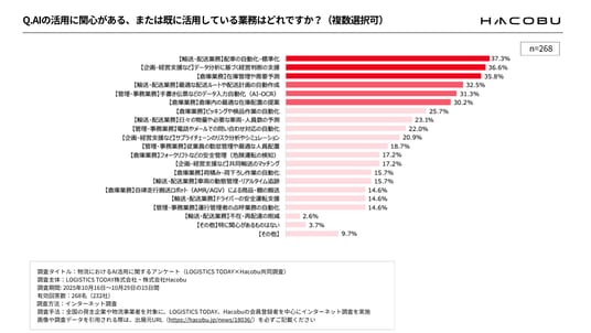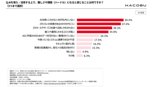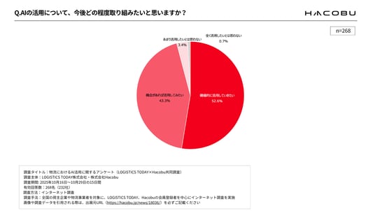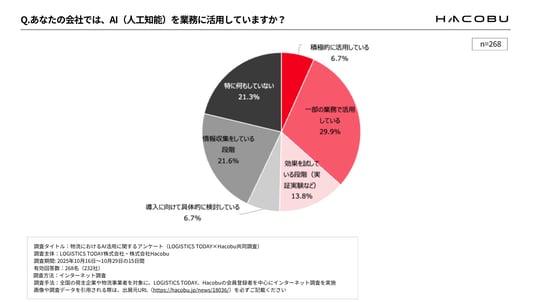 調査タイトル:物流におけるAI活用に関するアンケート(LOGISTICS TODAY×Hacobu 共同調査)
