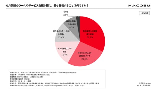 ・AI関連のツールやサービス選定で重視するのは「物流業務への理解」
