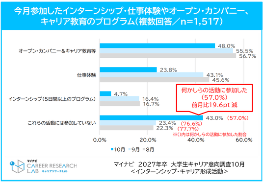「マイナビ 2027年卒 大学生キャリア意向調査10月<インターンシップ・キャリア形成活動>」