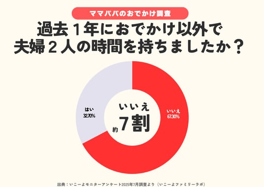 外出してのデート以外におうちでの夫婦の時間を持ったかという質問には、約7割(67.3%)が持っていないと回答しています。