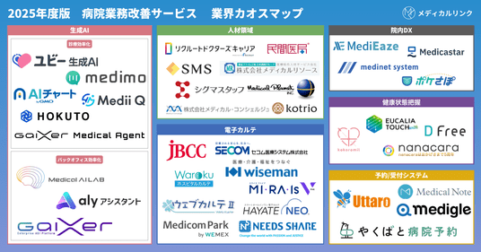 医療機関向け採用サイト制作による採用支援事業を展開する株式会社メディカルリンク(本社:東京都渋谷区 、以下 メディカルリンク)は、独自の調査により病院業界の業務改善に関連するサービス・ツールをまとめた「2025年度 病院業務改善 業界カオスマップ」を公開いたします。