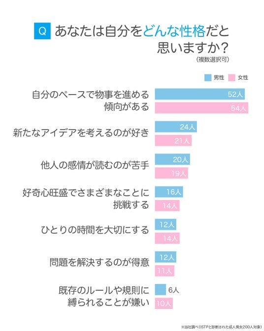 調査対象:MBTIテストで「ISTP」と診断された成人男性・成人女性