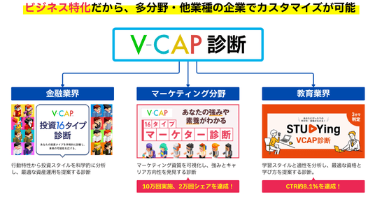 V-CAP16タイプ診断はビジネス特化だから、他分野・他業種の企業でカスタマイズ。