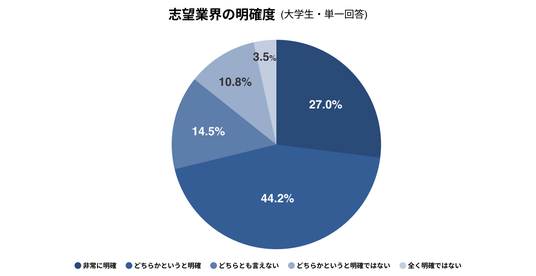サマーインターン終了後の10月時点では、志望業界が明確な学生が全体の7割強。インターンを通じた業界理解の深化により、早期の段階で方向性を定める学生が多く、業界選択が着実に進んでいることがうかがえる。