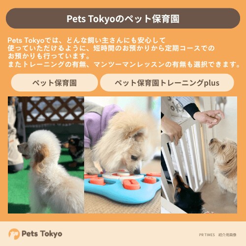 Pets Tokyoが運営するペット保育園は、日中の“お預かり”と“しつけ・運動”を兼ね備えたサービス。スタッフが常駐し、快適な温度環境で見守るため、飼い主も安心して仕事や外出ができます。
