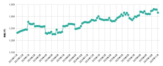 【図1】全国平均時給 直近25か月の推移