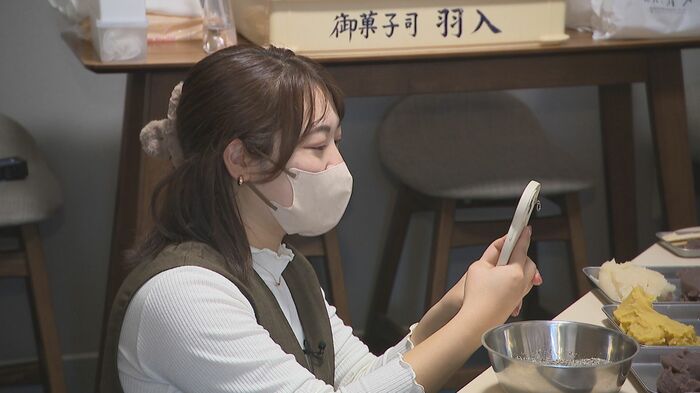 2児の母であるあやかさんは、子育て世代に寄り添う発信を行っていて、この日は秋葉区の人気和菓子店で子どもと一緒に三色団子作りを体験していた。