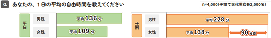 家事・育児時間の男女差が縮小!足りないのは自由時間と睡眠!?