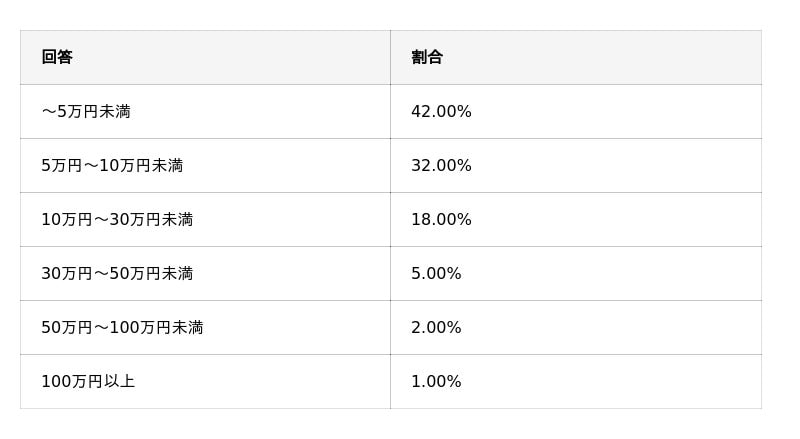 施術の総額として「~5万円未満」「5万円~10万円未満」に多くの回答が集まりました。