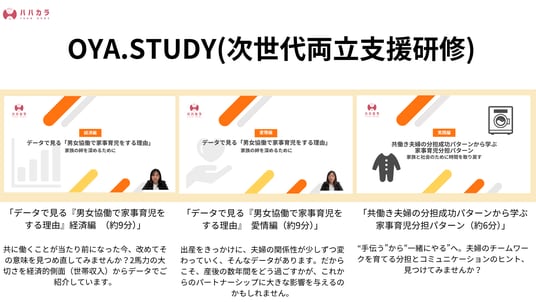 ※なお、本実証に参加いただいた企業さまからのご提言を受け、プログラム名称を「次世代両立支援研修」へ見直しました(OYA.STUDYはプログラム総称)