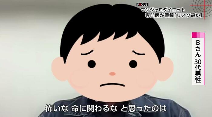 別の男性は、マンジャロの作用で過度な食欲が抑えられた結果、低血糖などの症状に襲われ、命の危険を感じた経験を語った。