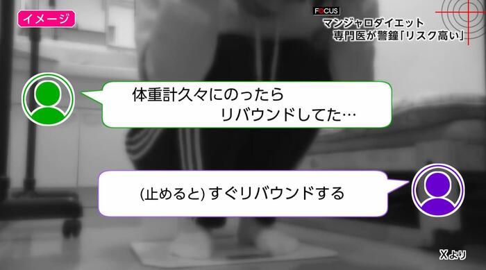 またSNS上では、マンジャロの使用を中止した際の「リバウンド」に関する投稿も多く見られる。「体重計久々に乗ったらリバウンドしてた」「すぐリバウンドする」などがそれだ。