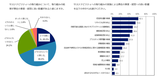 具体的な良い影響としては、「CO2排出量の削減」「リサイクル率の向上」「持続可能な到達に向けたサプライヤーとの連携強化」「顧客満足度の向上」「従業員満足度の向上」などが挙げられました。