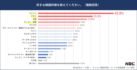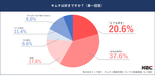 韓国食品スーパー「Yesmart」を運営する株式会社ナック(本社:東京都新宿区、代表取締役社長:吉村 寛)は、11月22日「韓国キムチの日」に向けて、全国20代以上の男女500名を対象に「キムチと韓国料理についての意識調査」を実施しました。