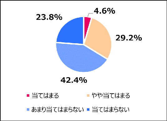 - 総計で「当てはまる」「やや当てはまる」と回答した人の割合は15.1%にとどまった。