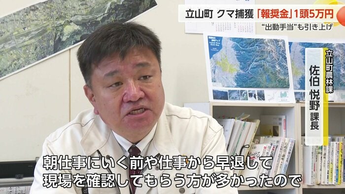 「朝仕事にいく前や仕事から早退して、現場を確認してもらう方が多かったので、報酬を増やしたいというのは私と町長の思いだった。人身被害の後に色んな方から言われるのは、クマの捕獲をどんどん進めてもらわないと安心できないと」