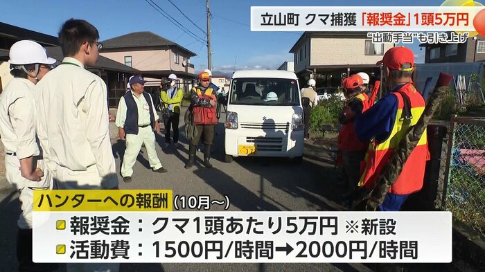 県内でのクマの出没件数は17日までに941件と過去10年で最多となり、立山町ではクマによる人身被害が2件起きていました。クマの捕獲にあたるハンターへの報酬が危険度に対して低いといった指摘があり、町が応えたかたちです。