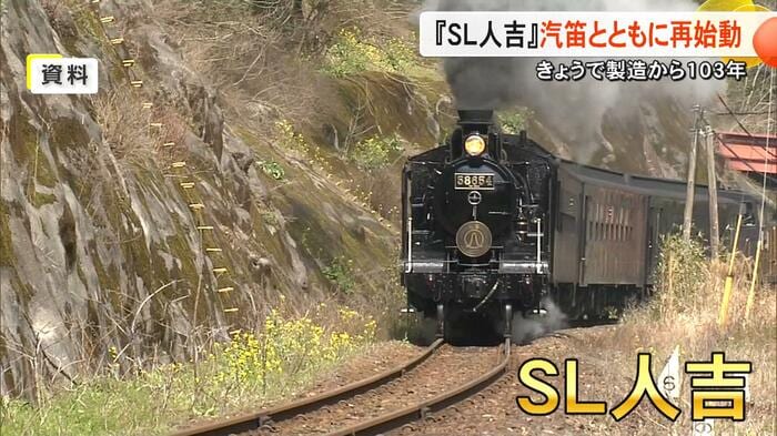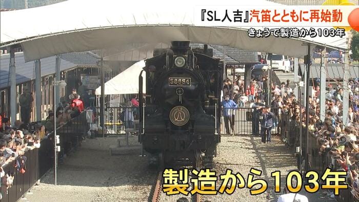JR人吉駅の隣に展示されている『SL人吉』が、11月18日で製造から103年を迎える。このSL人吉の誕生日を前に、人吉市は11月16日に列車をレールで走らせる『動態展示』を開始し、その姿を一目見ようと多くの人が集まった。