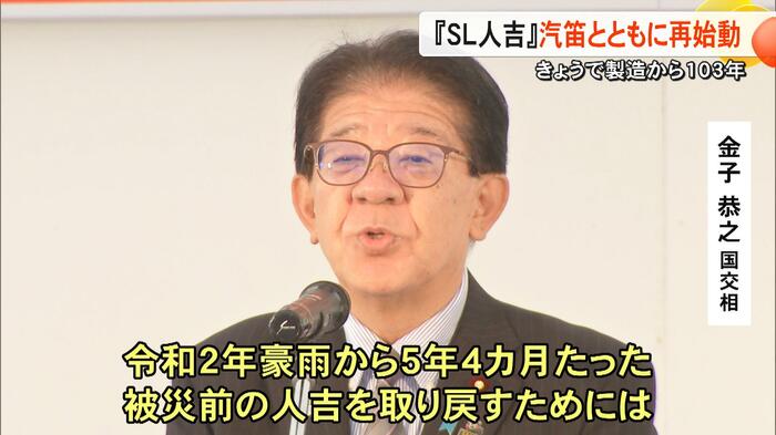 16日には金子恭之国交相も参加し、「令和2年豪雨から5年4カ月がたった。被災前の人吉を取り戻すためには、いろんな努力の中で地域創成をやっていかないといけない。きょうからはSL人吉の動態化で全国の『鉄ちゃん』のよりどころになると思う」と述べた。