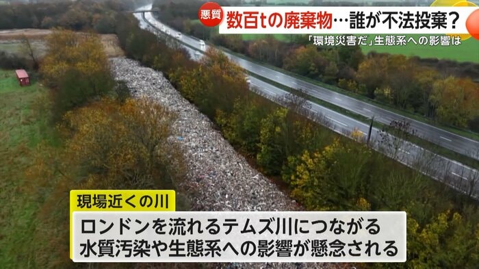 イギリス南部オックスフォードシャー州で、2025年6月頃から幹線道路沿いに不法投棄されたゴミが積み上がり、9月末には長さ60m・高さ最大12mに達した。環境団体は「甚大な環境災害」と警告し、地元議員も政府支援を要請しているが、清掃費は50億円以上かかると試算されている。