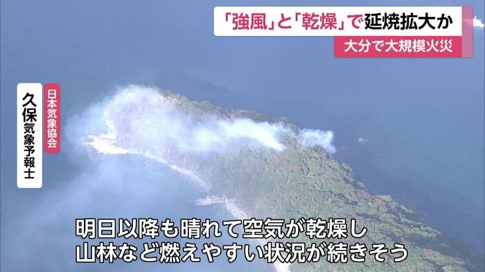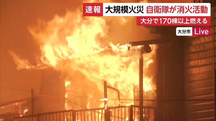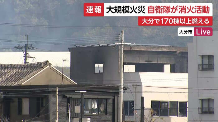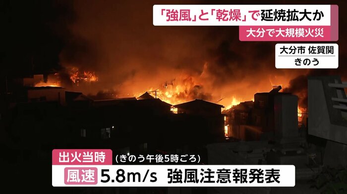大分市では、出火当時の18日午後5時ごろは5.8メートルの風を観測し、強風注意報が出されていた。広い範囲に燃え広がった一因とみられている。