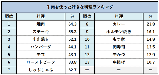 ■「いい肉の日」に食べたいのはやっぱり牛肉!人気の牛肉料理TOP3は「焼肉」「ステーキ」「すき焼き」
