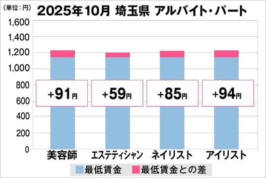 埼玉県の美容業界における採用時給料に関する調査結果(アルバイト・パート)2025年10月美プロ調べ