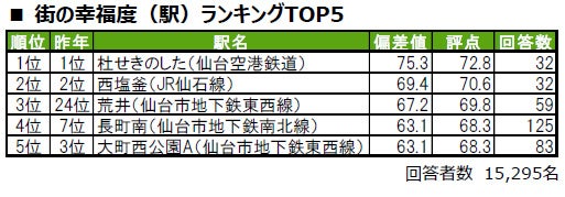 ■街の幸福度(駅)トップは、2年連続で杜せきのした