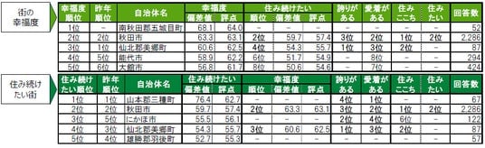 住み続けたい街の1位は4年連続で山本郡三種町。2位は5年連続で秋田市。3位にかほ市。