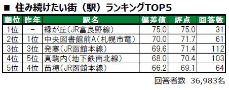 ■住み続けたい街(駅)トップは、初登場の緑が丘