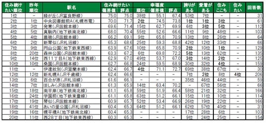 ●11位~20位では、11位北13条東(昨年20位)、15位発寒(昨年24位)が、昨年より特に順位を上げています。