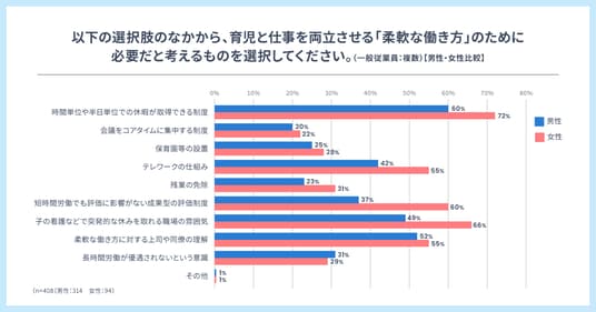 企業側は制度整備の焦点を絞る傾向がある一方、従業員は家庭や働き方の多様化に応じた選べる制度を求めていることが分かりました。