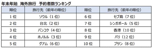 ※データを引用する場合には、出典の表記 「HIS年末年始 海外旅行予約動向」 をお願いします。