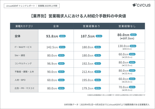 circus株式会社(所在地:東京都中央区、代表取締役:⽮部 貴志)は、人材紹介プラットフォーム「circusAGENT」に掲載された求人データ(2025年4月~9月)をもとに実施した営業職のエージェント採用トレンド調査を行いました。