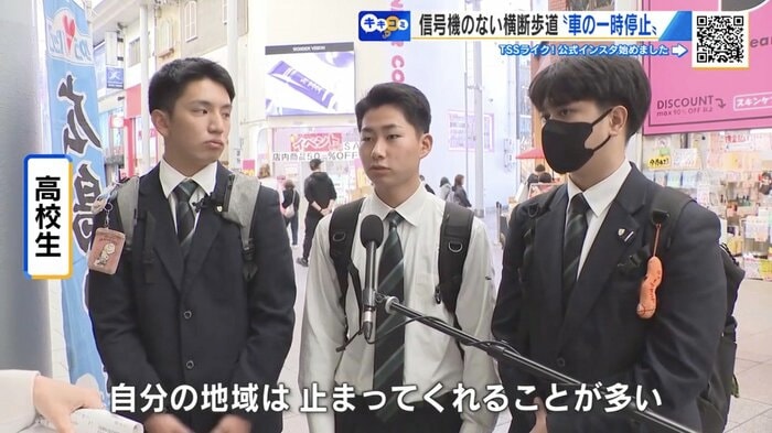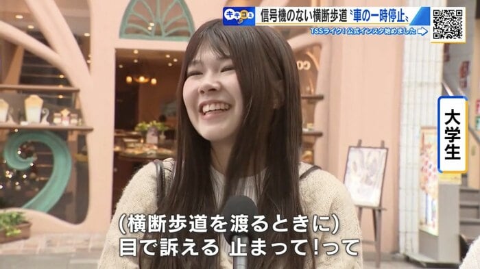 大学生は「立っていても止まってくれないことがあります。車が先に行けば、歩行者は後で渡れると思われているのかもしれない。事故にあったら困るので止まってほしい」と経験を話した。