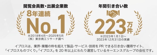 株式会社イプロス(本社:東京都港区)が運営する「イプロス」「イプロスものづくり」は、186万人の会員を有し、8年連続国内No.1(※)の規模を誇るBtoB向けリード獲得サイトです。