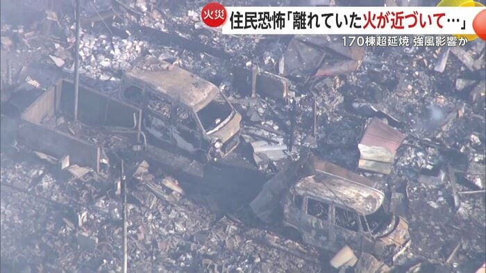 (自宅は)もう燃えています。もう火が上がった。火元はまだ離れていたんですよ。でもだんだん(火が)近づいて来て、消防が「避難しろ」って。