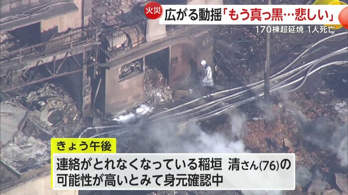 現場では午後、性別のわからない人が心肺停止の状態で見つかり、その後死亡が確認された。連絡が取れなくなっている稲垣清さん(76)の可能性が高いとみて、身元の確認を進めている。