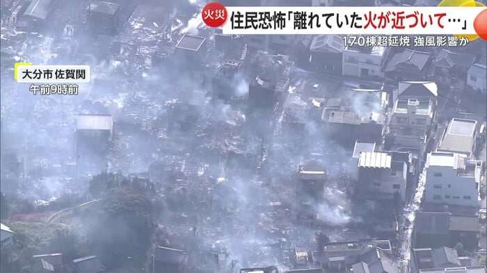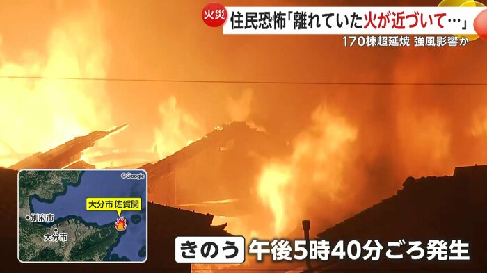 大分市には17日から強風注意報が出ていて、火災発生当時、北西からの風が強く、最大瞬間風速10.9メートルを観測。